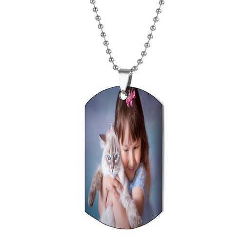 Custom Photo Necklace, Personalized Dog Tags Necklace, Engraved Picture Text Necklace, Handwriting/Drawing Necklace, Unique Gift for Him -