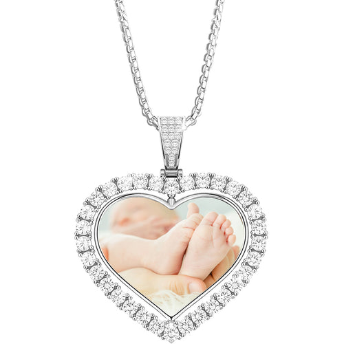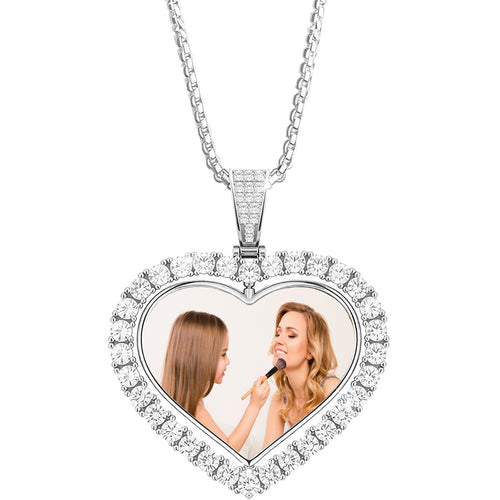 Custom Snowflake Picture Necklace with Photo Inside, Personalized Text & Love in 100 Languages CZ Cubic Zirconia Pendant, Customized Birthday Anniversary Memorial Gift for Women Mother Wife -
