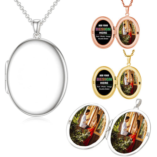 Antique Empaistic Carved Photo Locket Hold Picture Engraved Flower Pattern Oval Round Heart Vintage Pendant Necklace for Women Memory Romantic Souvenir Jewelry -