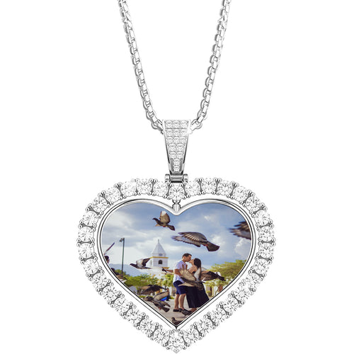 Angel Wings Custom Photo Moissanite Pendant 925 Silver Memory Picture Necklace -