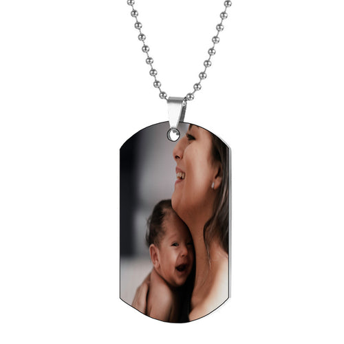 Engraved Photo Necklace with Text, Personalized Picture Necklace for Men, Photo Dog Tag Necklace, Anniversary Gift, Boyfriend Gift for Him -