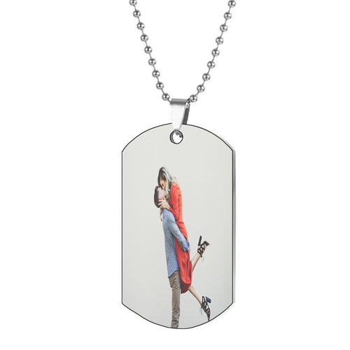 In Loving Memory Custom Dog Tag Necklace, Personalized Engraved Photo Fingerprint Quote, Engraved Message Stainless Steel Chain Gift for Him -